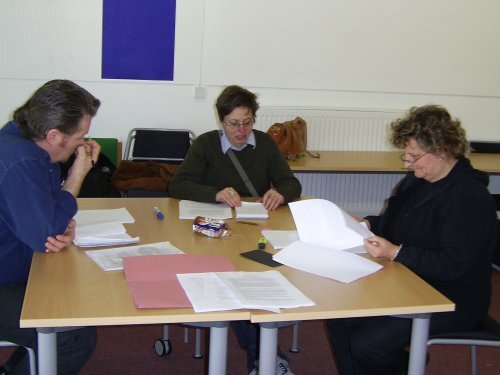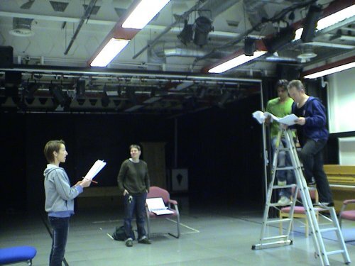 There were two distinct rehearsal phases. The first one was just Lynn Hunter, Brendan Charleson and myself.  Lynn and Brendan have vast experience in TIE (Theatre in Education) and also in dramaturgy workshops, both outside and within the university. For the past 7 years they have been visiting lecturers on the Directing Option which I run with second year undergraduates, teaching directing actors.   I asked them along in order to have a dramaturgy session, to test the script and to make sure it was both coherent and useful.