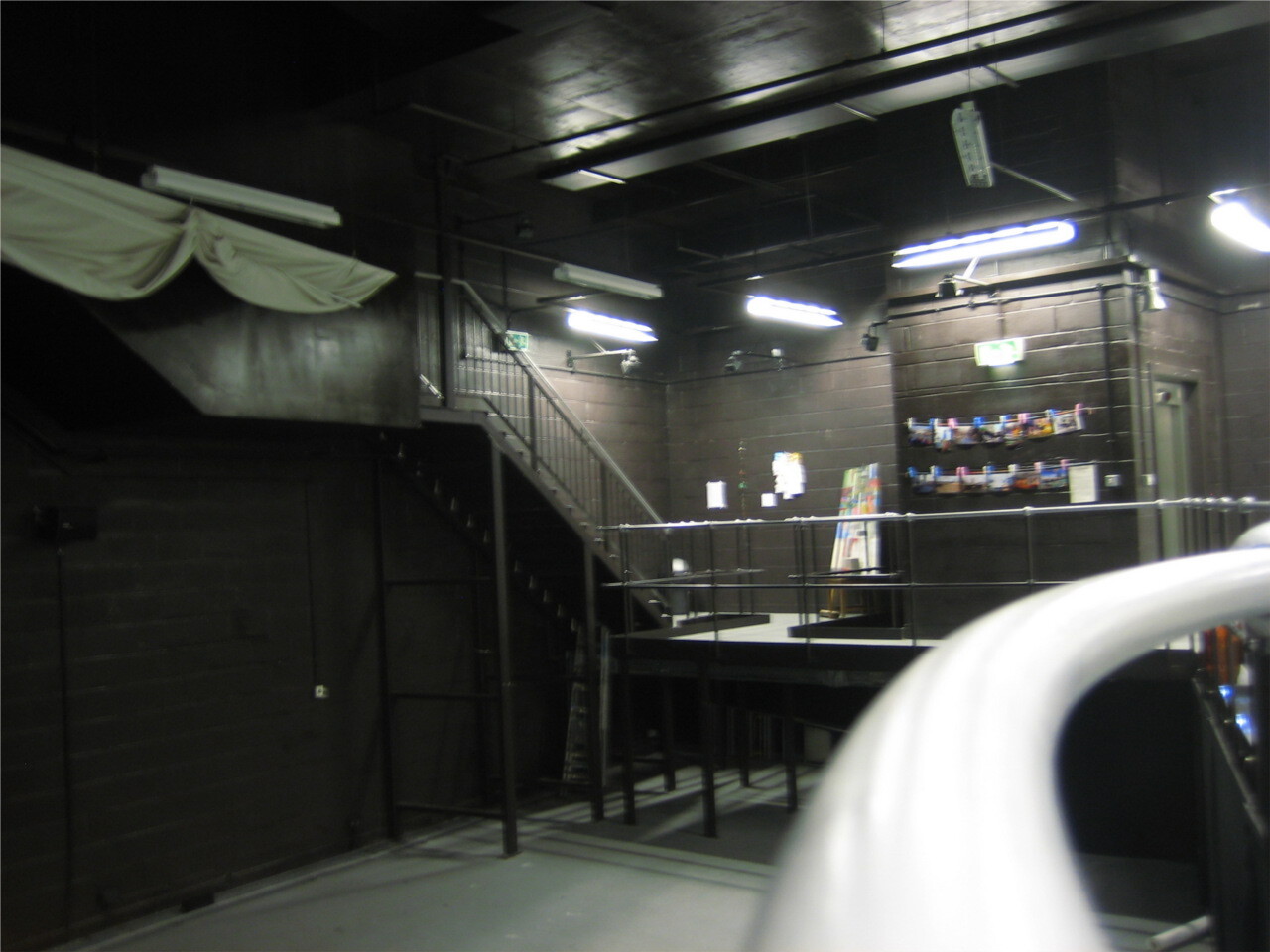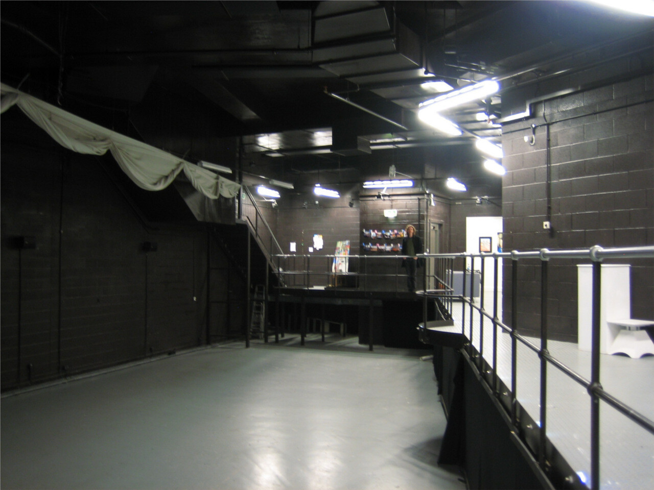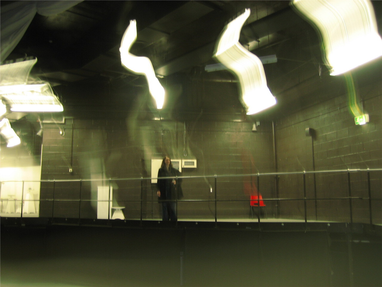The Riverfront Arts Centre is next to the University of Wales Newport, and they kindly agreed to host Echo in their basement space from 4th – 11th Nov 2012. This is a black box space of a rather unusual kind. It was designed to house the Newport Ship, a fifteenth century sailing vessel discovered in the Usk in 2002. However the ship, when excavated, was revealed to be too large for the designed space, and it has been adapted for use as a black box studio space. It is thus very long and narrow with a gantry which follows the shape of the ship.